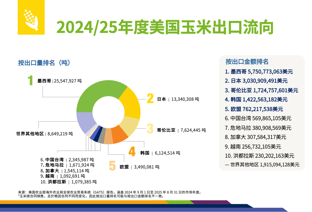 作为全球重要的玉米出口国,美国始终致力于为国际市场提供优质、可持续的玉米产品。凭借透明的市场机制和诚信的贸易传统,美国玉米在国际市场上持续保持强大竞争力。
